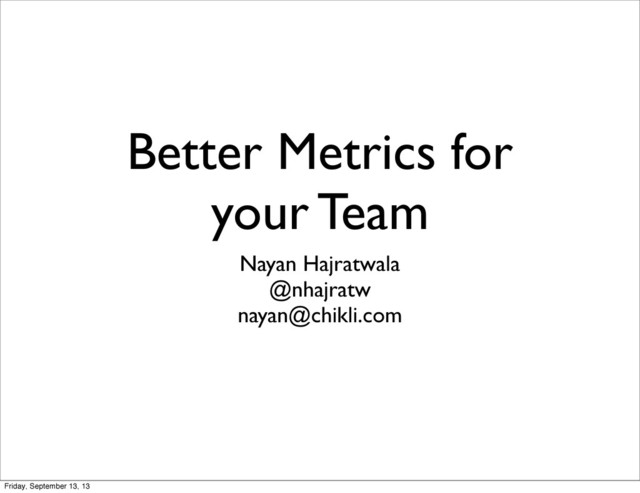 You’ll walk away from this session understanding the purpose of capturing metrics, how few you actually need, and participate in an interactive game showing you how to capture them.