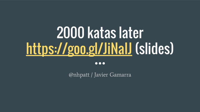 • Iterations: Lean Code (with facilitator) • You already know a lot: Calisthenics • You don’t want to be alone: Code Retreat • Architecture/Design: PacMan (any game kata) • Messy logic: Bowling, Poker Hands • Learn a language: Codewars