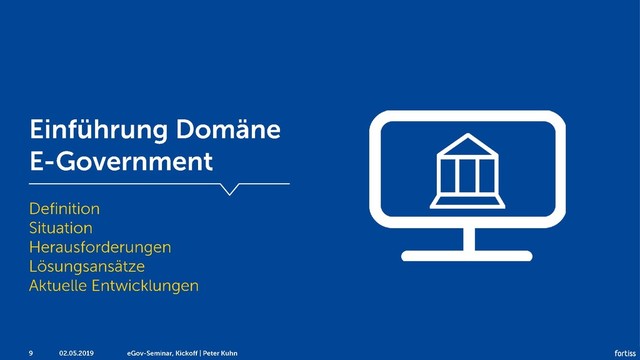 Einführung in die Domäne E-Government für das gleichlautende Seminar an der TU München im Sommersemester 2019.
