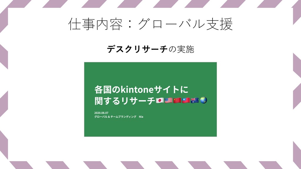 仕事内容:グローバル⽀援 デスクリサーチの実施