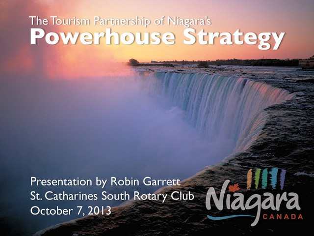 a strong relevant brand that creates a desire in our visitor to keep exploring and rediscovering Niagara Canada. MARKETING Animate the destination with events and develop packages featuring wine, culinary, cycling, golf, and garden experiences. PRODUCT DEVELOPMENT Work with government, industry and community groups to attract world- class tourism opportunities. INVESTMENT ATTRACTION Build awareness and implement a workforce learning program to promote service pride. WORKFORCE DEVELOPMENT Build a reputation for organizational excellence that fosters continuous improvement. ORGANIZATIONAL EXCELLENCE 1 2 3 4 5