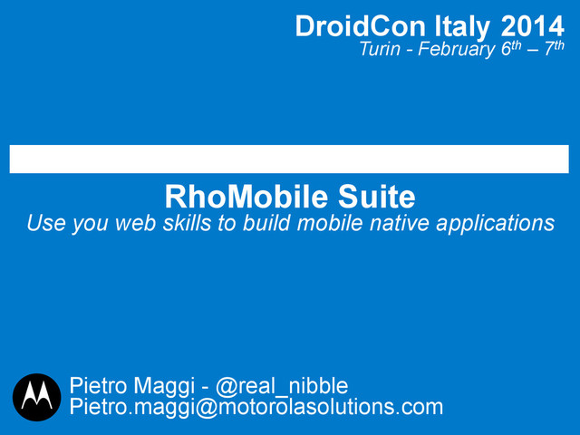 Suite Use you web skills to build mobile native applications Pietro Maggi - @real_nibble [email protected] DroidCon Italy 2014 Turin - February 6th – 7th