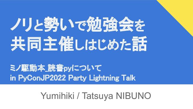 Yumihiki / Tatsuya NIBUNO ノリと勢いで勉強会を 共同主催しはじめた話 ミノ駆動本_読書pyについて in