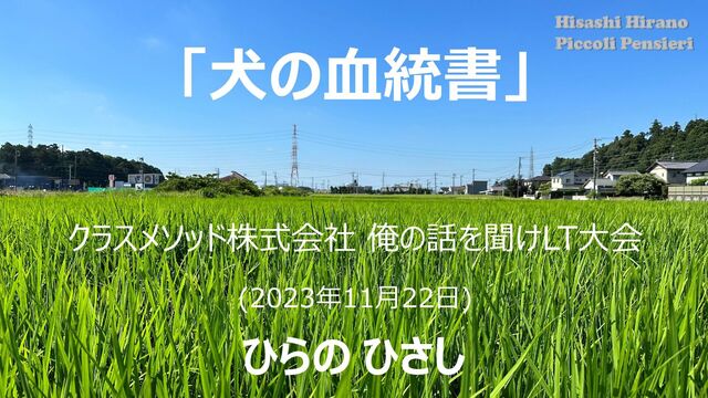 2023年11月22にクラスメソッド株式会社で開催された「俺の話を聞けLT大会」でお話した「犬の血統書」の資料です。血統書は、家系図のようなものです。ワンちゃんがどのような家系に生まれたのかを知ることができます。