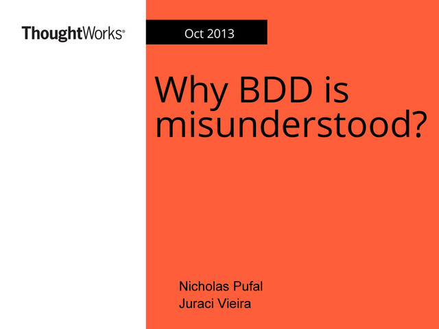 Many people complain about BDD. By taking a closer look in those complaints we realize that they start to reject BDD not because of its ideas, but because they try to solve all of their problems by installing a tool - and not really applying all of the concepts behind it. So, let's put everyone on the same page when the subject is BDD.