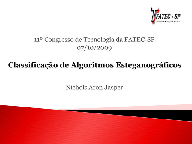 de São Paulo, São Paulo, 2009. COUTINHO, P.S. Técnicas Modernas de Esteganografia. Disponível em http://www.gta.ufrj.br/grad/08_1/estegano/TcnicasMod ernas.html - Acesso 06 de maio de 2009 WAYNER, Peter. Disappearing Cryptography: Information Hiding: Steganography & Watermarking. 2nd. ed., Morgan Kaufmann, San Francisco, California, 2002. Bibliografia