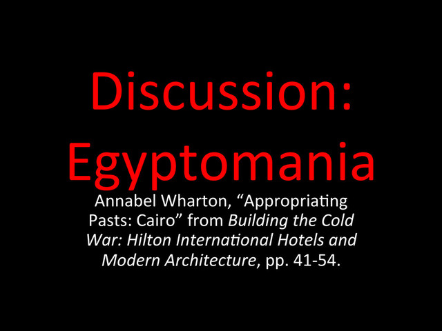 Discussion: Egyptomania Annabel Wharton, “Appropria:ng Pasts: Cairo”