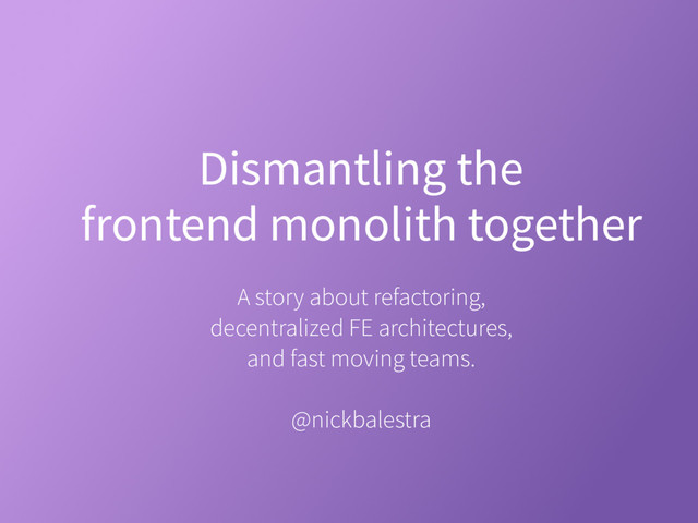 In this talk I'll walk you through our refactoring journey that led us to a decentralized microfrontend architecture. We’ll see how at OpenTable we enable fast-moving teams to easily build and independently deploy micro frontends using OpenComponents: an open-source, battle tested, framework for painless microfrontends delivery.