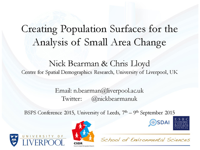 Nick Bearman & Chris Lloyd Centre for Spatial Demographics Research, University of Liverpool, UK Email: [email protected] Twitter: @nickbearmanuk BSPS Conference 2015, University of Leeds, 7th – 9th September 2015