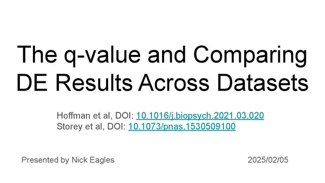 This presentation discusses the meaning of the q-value in statistics and covers appropriate ways to compare differential-expression results in genomics across datasets.