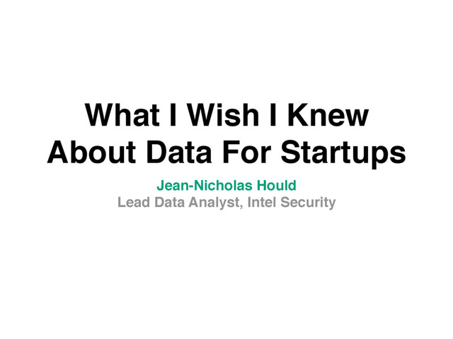 at a startup - Asana Blog • Everything We Wish We'd Known About Building Data Products - DJ Patil • Buffer’s Data Architecture - Buffer Blog • Facebook's Aha Moment Is Simpler Than You Think - Mode Analytics and a seamless plug…. • What I Wish I Knew About Data For Startups - jeannicholashould.com • Don't Build Another Dashboard From Scratch - jeannicholashould.com