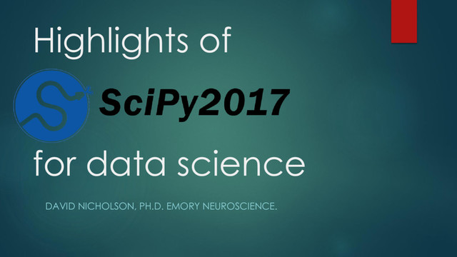 Highlights of for data science DAVID NICHOLSON, PH.D. EMORY NEUROSCIENCE.