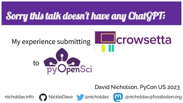 slides • high school dropout • failed rock star • PhD in neuro (songbirds) • research software engineer (US-RSE) • current editor in chief, pyOpenSci ◦ non-traditional background → ◦ I understand why we need to work on inclusivity in science and software ◦ inclusivity is part of pyOpenSci's mission