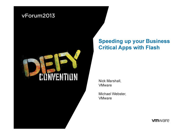 in smartphones, tablets, laptop computers, storage arrays, etc. § Adopting flash in enterprise servers? • Presents an economical alternative to having a storage array § How does VMware embrace flash technology in vSphere 5.5? • Native support for provisioning of flash resources • Flash caching support in ESXi storage stack • VSAN leverages flash storage for high performance § Today’s Focus: Application performance on vSphere 5.5 when leveraging flash