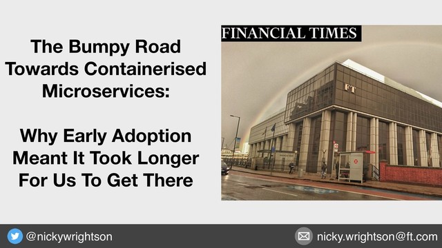 A more up to date version of my "Journey to containerised microservices". I did this talk at Cloud Native London 2018 and JAXLondon 2018: