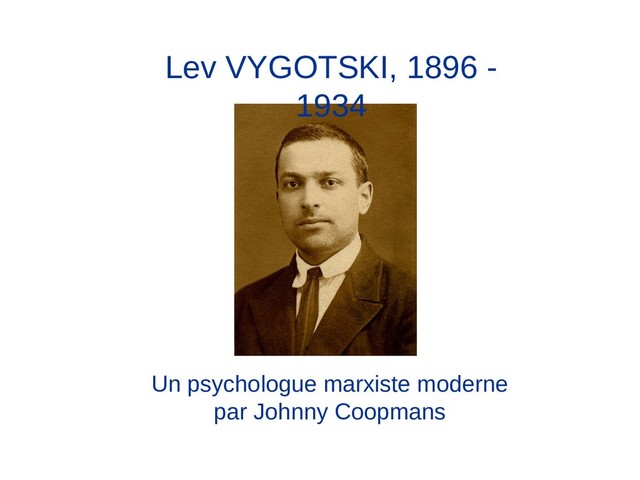La vie de Vygotski - Le contexte : les 4 foyers de la jeune science psychologique - Les arrière fond philosophiques - L’école historico-culturelle - Psychologie de l’enfance - Actualité de l’héritage vygotskien 6heures pour l'école démocratique, APED, 16 novembre 2019