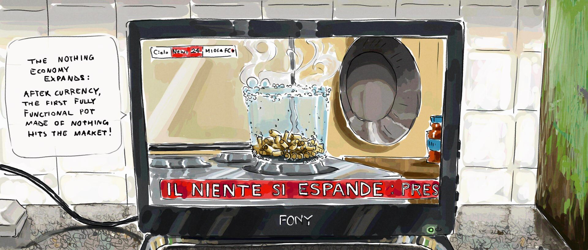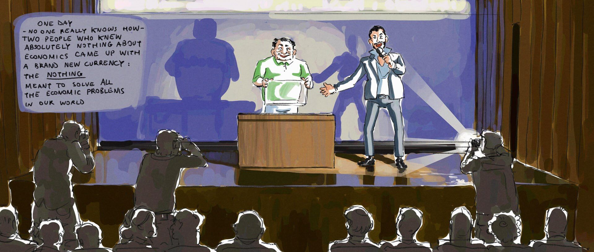 to solve world poverty and economic problems, a bunch of non-economists introduce a new currency to the market — “nothing,” made out of nothing.