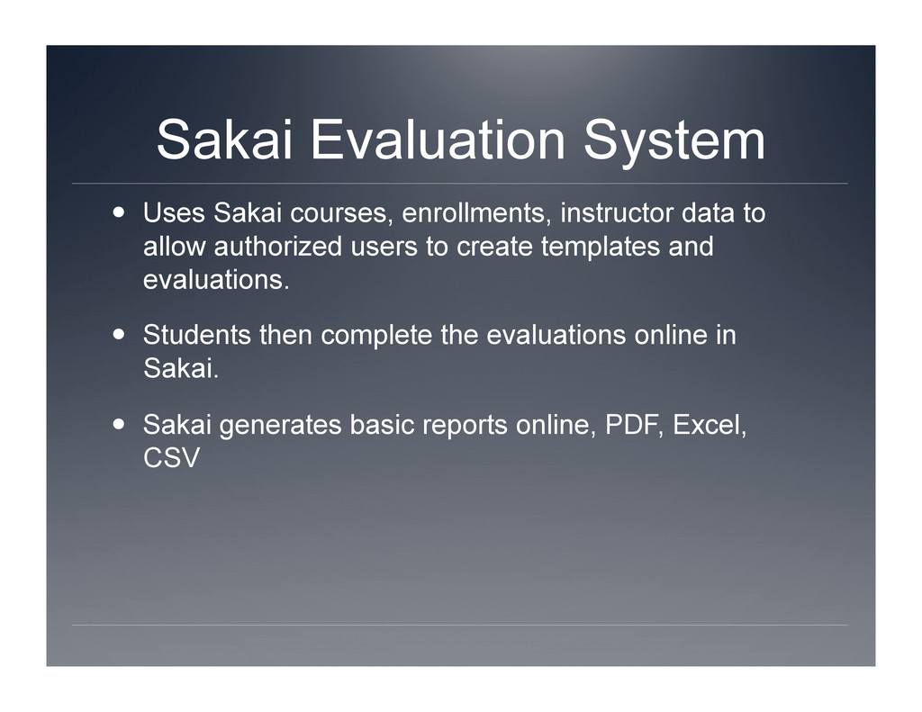 and Colleges need to evaluate instructors and courses Paper surveys distributed in class, 5-10 minutes class time used, student collects paper surveys, delivers to Office by hand Scantron? Tabulated, perhaps is shared with students, perhaps faculty see it….eventually. Wouldn’t it be nice if we could do this electronically?