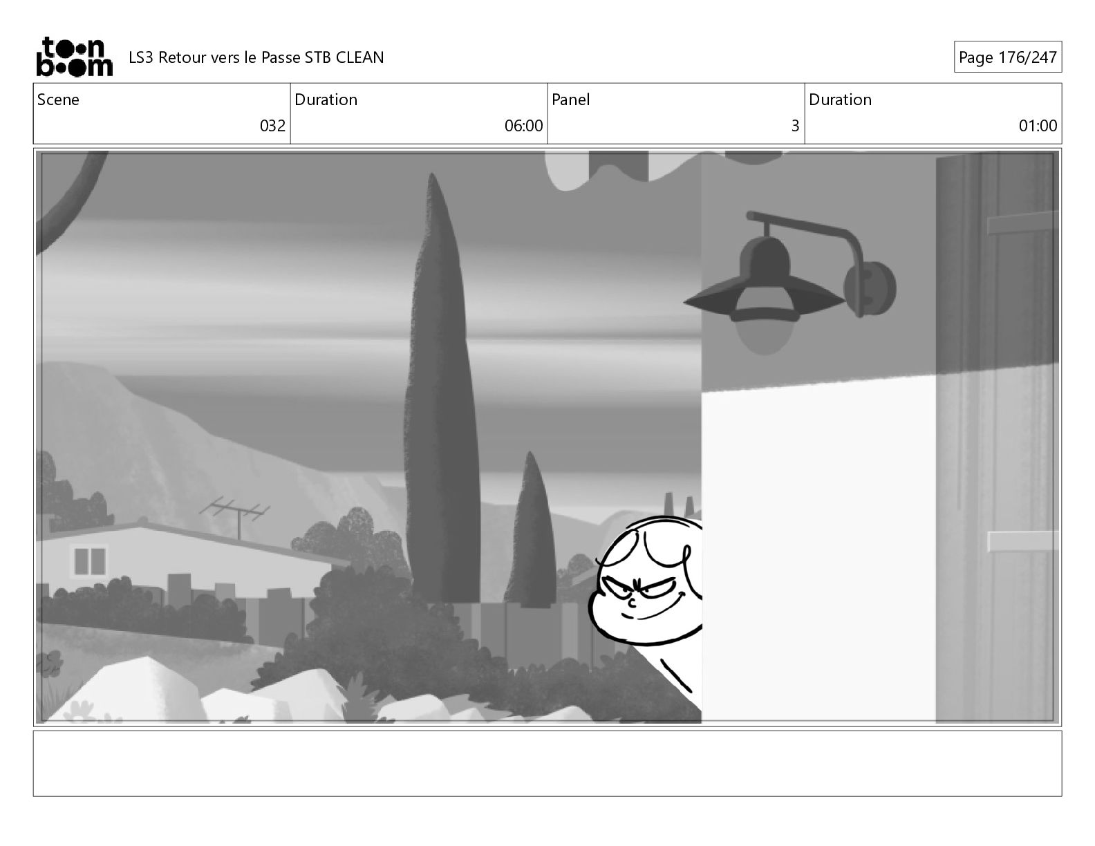 Scene 006 Duration 04:00 Panel 1 Duration 01:00 LS3 Retour