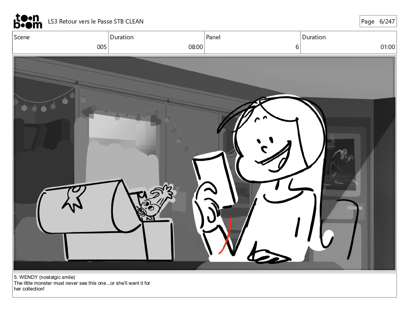 Scene 005 Duration 08:00 Panel 6 Duration 01:00 5. WENDY