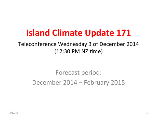 Preliminary support material for the ICU 171 (December 2014 - February 2015 forecast period) teleconference