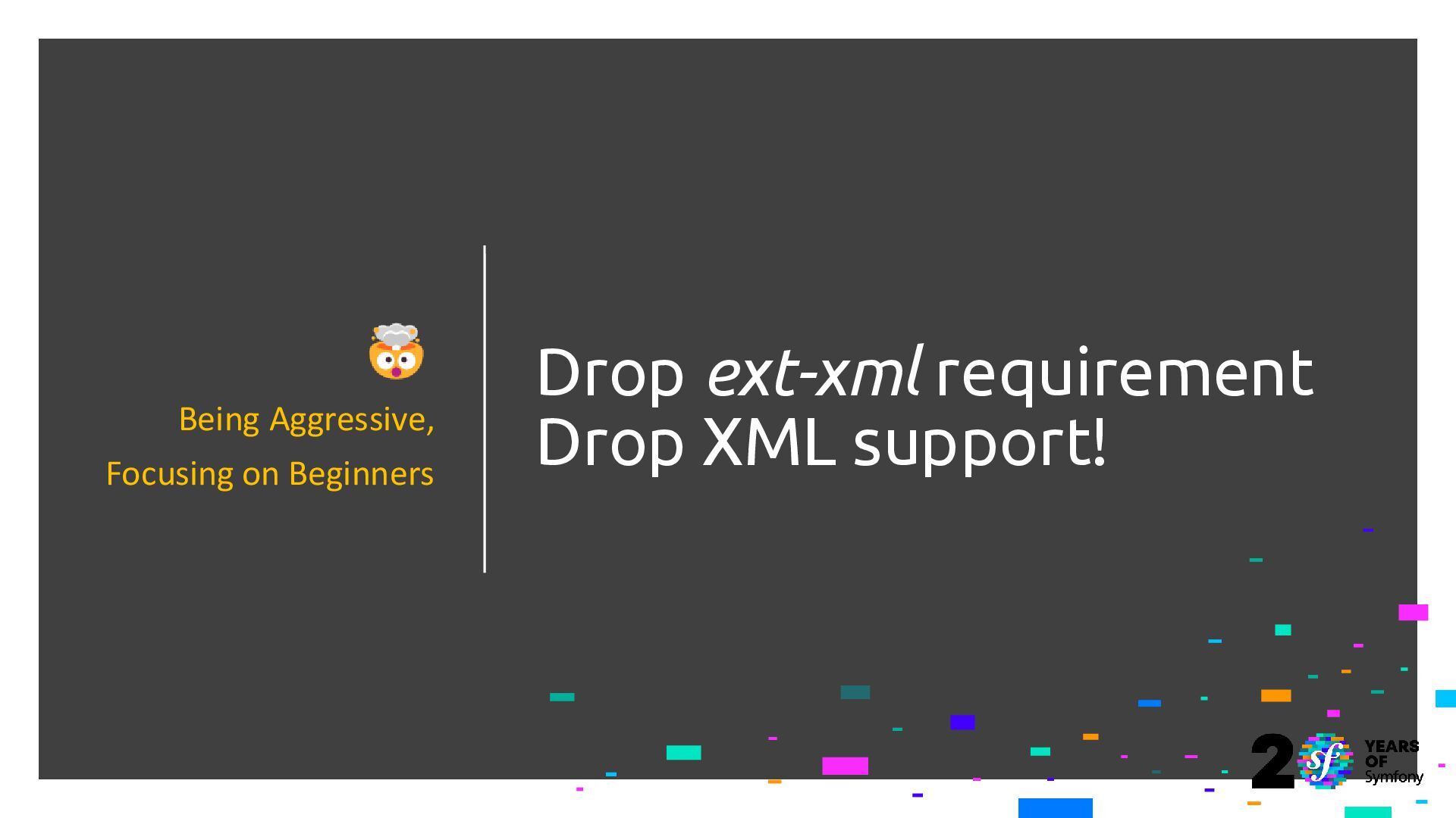 Options paralysis @nicolasgrekas YAML XML? PHP? No Config?