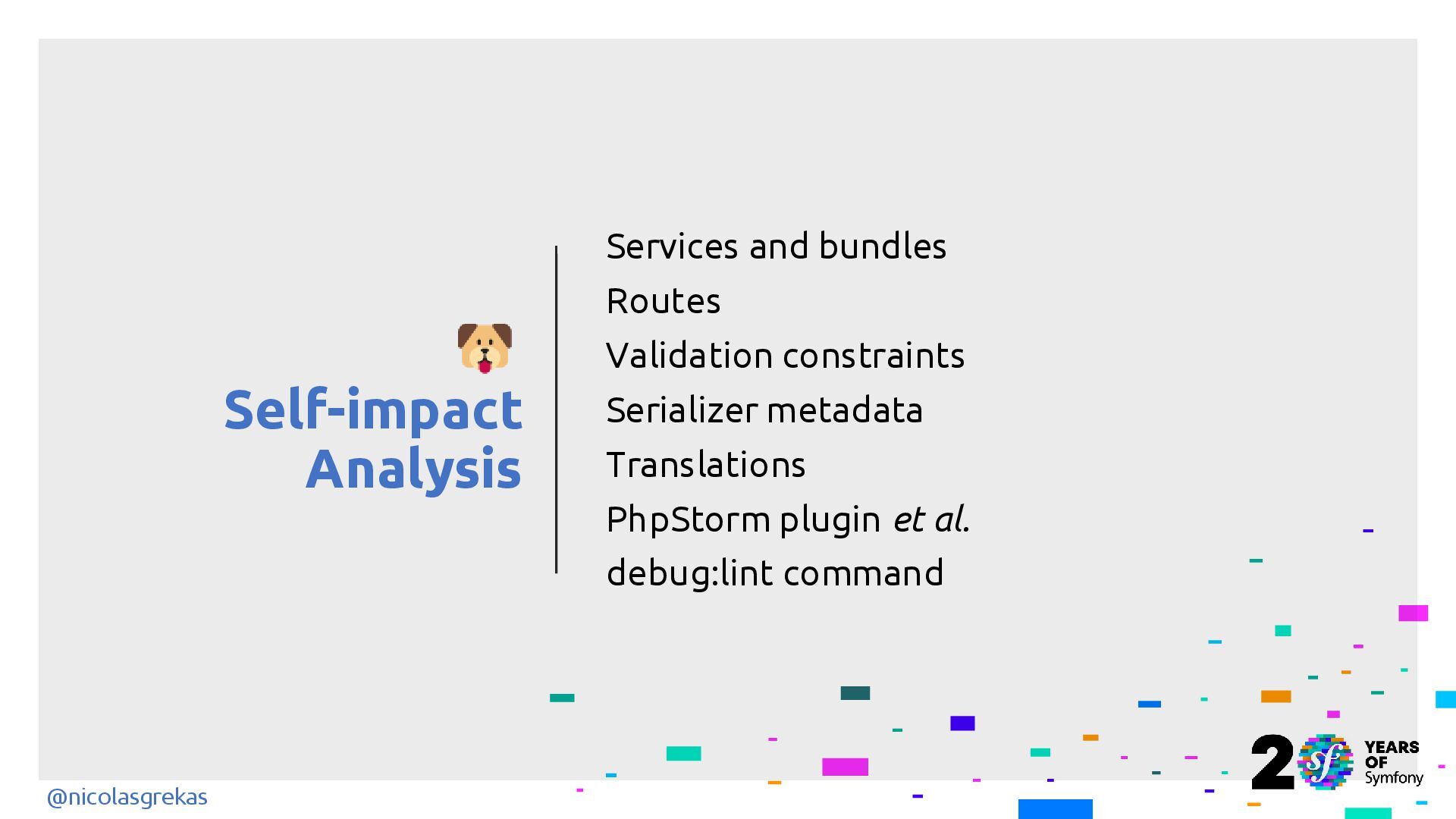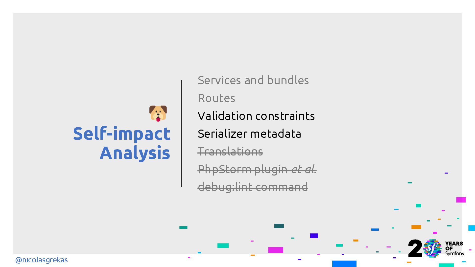 Self-impact Analysis @nicolasgrekas Services and bundles Routes Validation constraints Serializer