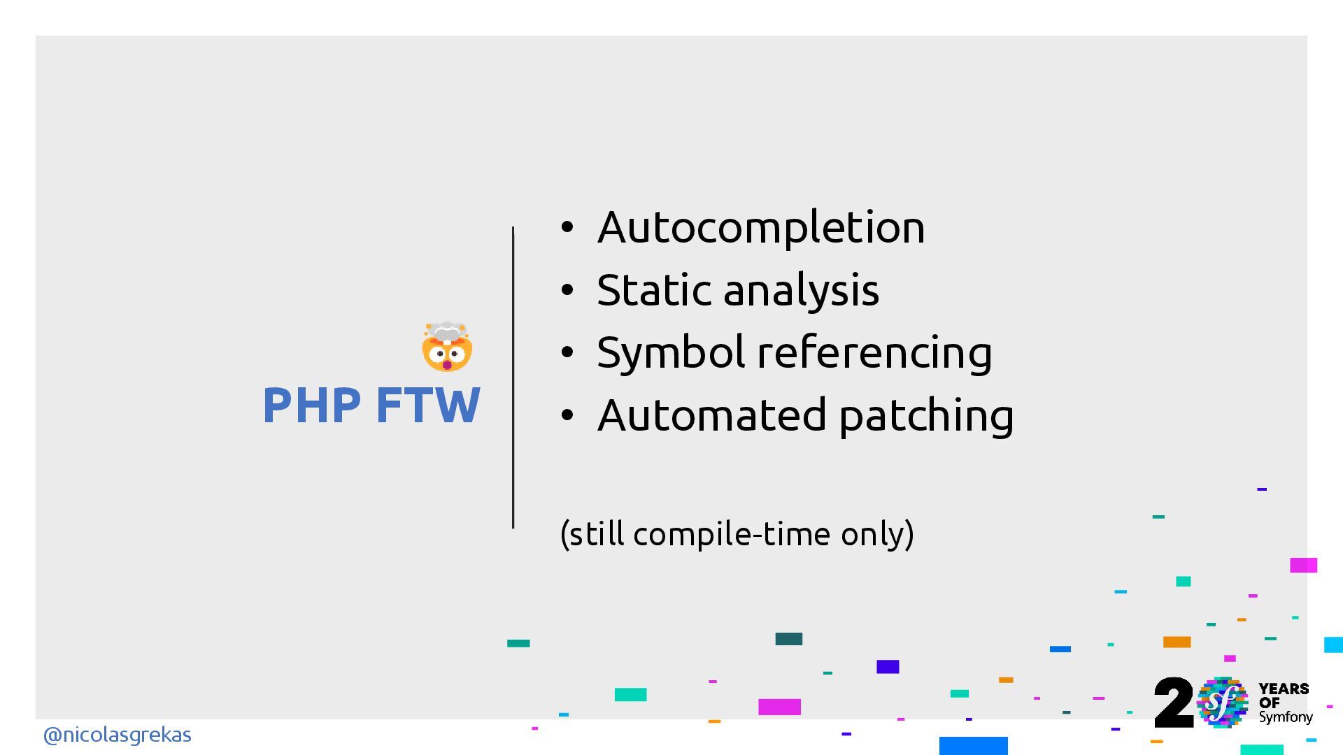 PHP FTW @nicolasgrekas • Autocompletion • Static analysis • Symbol