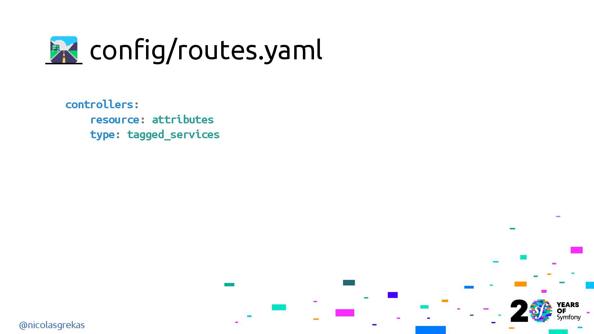 config/routes.yaml controllers: resource: attributes type: tagged_services @nicolasgrekas