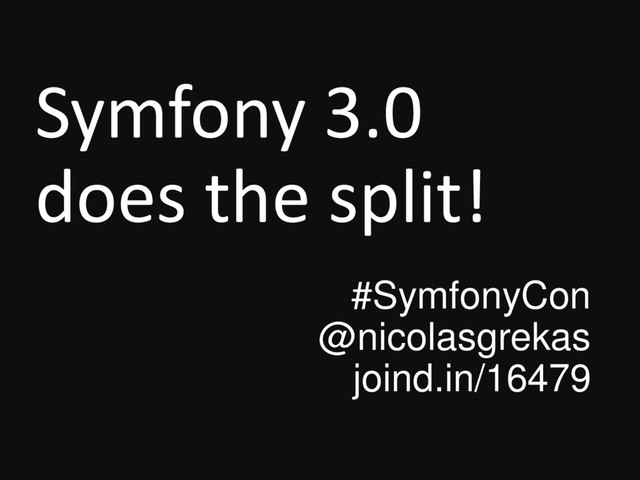 Migrating from Symfony 2.3 to the newest Symfony 3.0 won't force you to rewrite all your application. Instead, you'll follow a well documented and continuous upgrade path to make a smooth transition. How is this possible? In this session, I'll tell you how the BC promise enables easy migrations. I'll also tell you about the creation of the new deprecation policy introduced in Symfony 2.7. These are the two corner stones that allow Symfony to do the split: having a wide range of stable apps and innovating at the same time.