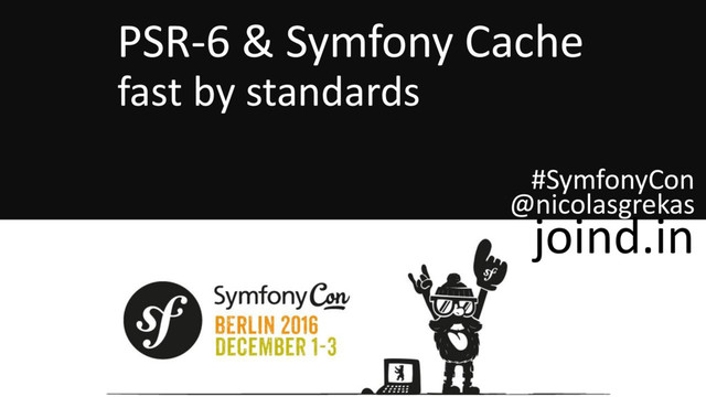After several months of discussion, the PHP-FIG (PHP Framework Interop Group) published the PSR-6. Its goal is to enable interoperability between caching systems implementations - a mandatory aspect to improve performance in your applications. At this conference, we will see the benefits and limitations of PSR-6, we will discuss the various existing cache solutions (Doctrine, Stash, php-cache), and I will present the Symfony 3.1 Cache component and its latest improvements in version 3.2.