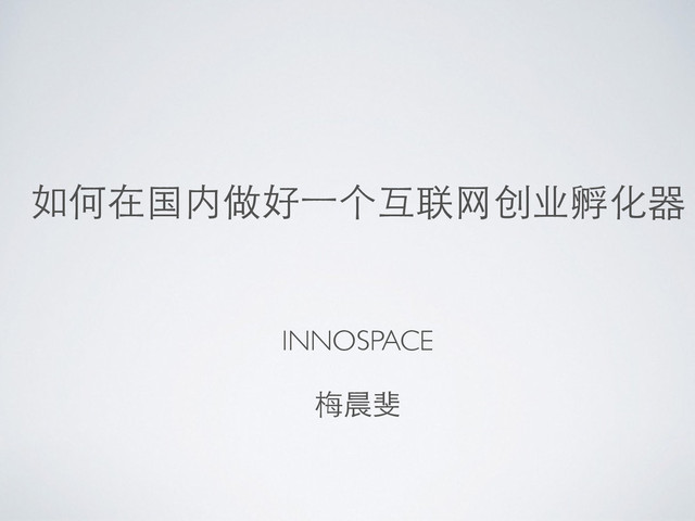 INNOSPACE 梅晨斐 如何在国内做好⼀一个互联⺴⽹网创业孵化器