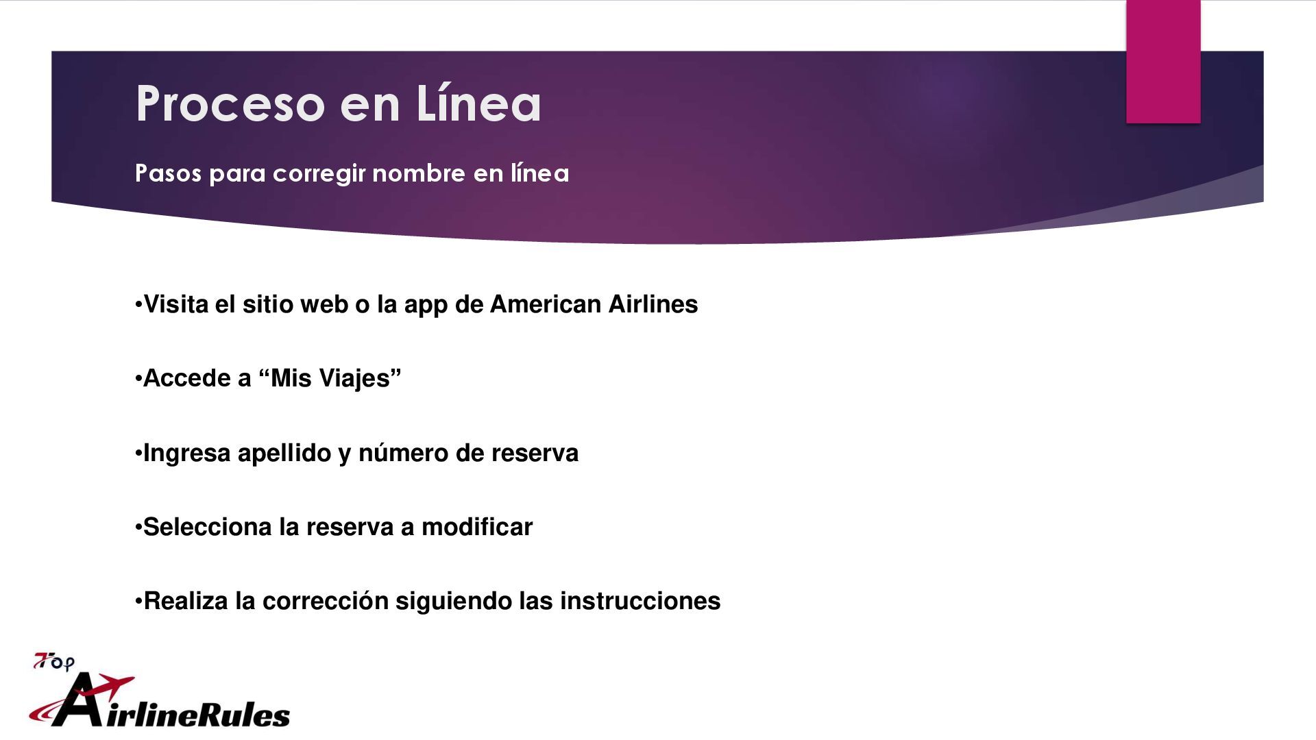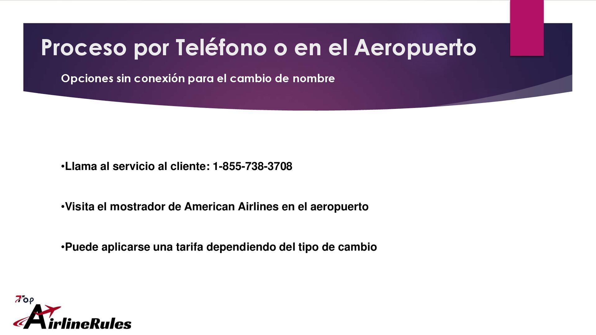 Si necesitas corregir o cambiar el nombre en tu boleto de American Airlines, es importante seguir las políticas establecidas por la aerolínea. Ya sea por un error tipográfico o un cambio legal, American Airlines permite ciertos ajustes bajo sus normas. Para asistencia directa, puedes llamar al 1-855-738-3708. También puedes visitar TopAirlineRules para una guía completa sobre el proceso, requisitos y tarifas asociadas al cambio de nombre.