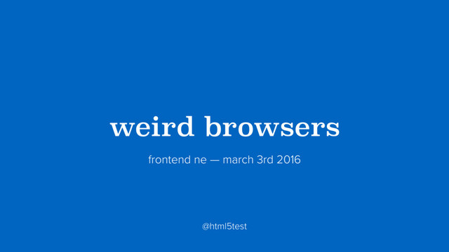 Now that everybody builds responsive sites and mobile has become the new normal, are there still any weird browsers left? The latest generation of Smart TV's run on the same operating systems as our mobile devices. How weird can these browsers be? Perhaps Smart TV's aren't as smart as we all would like to think. But there are more weird browsers. How do game console handle your websites and are e-readers really capable of browsing the web?