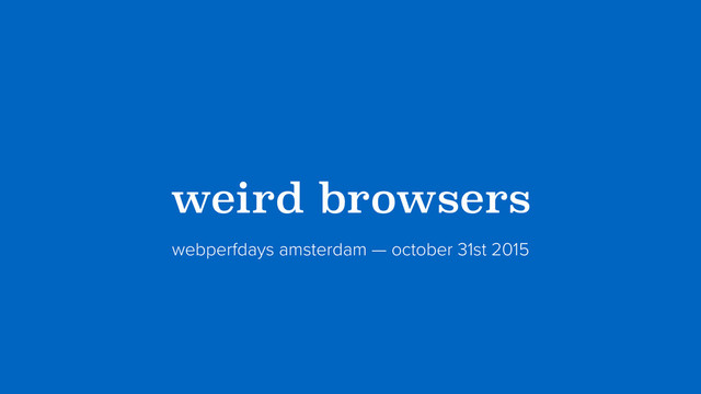 Now that everybody builds responsive sites and mobile has become the new normal, are there still any weird browsers left? The latest generation of Smart TV's run on the same operating systems as our mobile devices. How weird can these browsers be? Perhaps Smart TV's aren't as smart as we all would like to think. But there are more weird browsers. How do game console handle your websites and are set top boxes really capable of browsing the web?