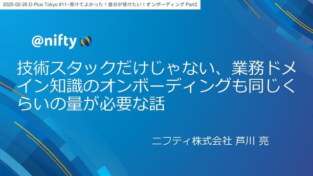 登壇者 ニフティ株式会社 芦川 亮