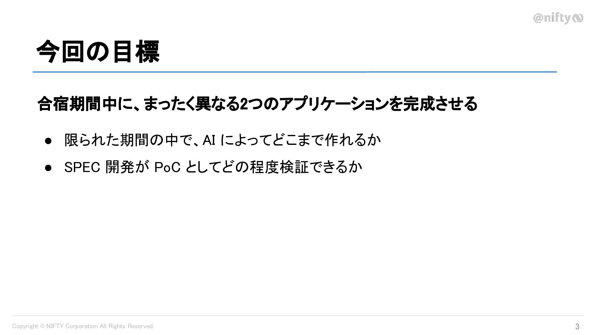 Copyright © NIFTY Corporation All Rights Reserved. 今回の目標 3