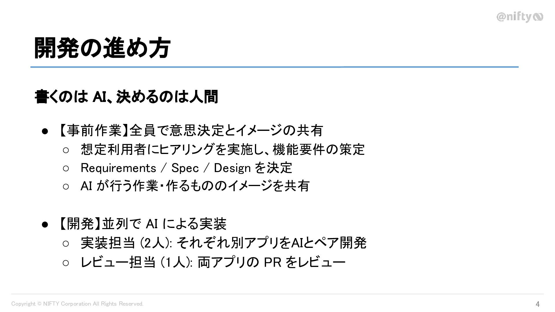 Copyright © NIFTY Corporation All Rights Reserved. 開発の進め方 4