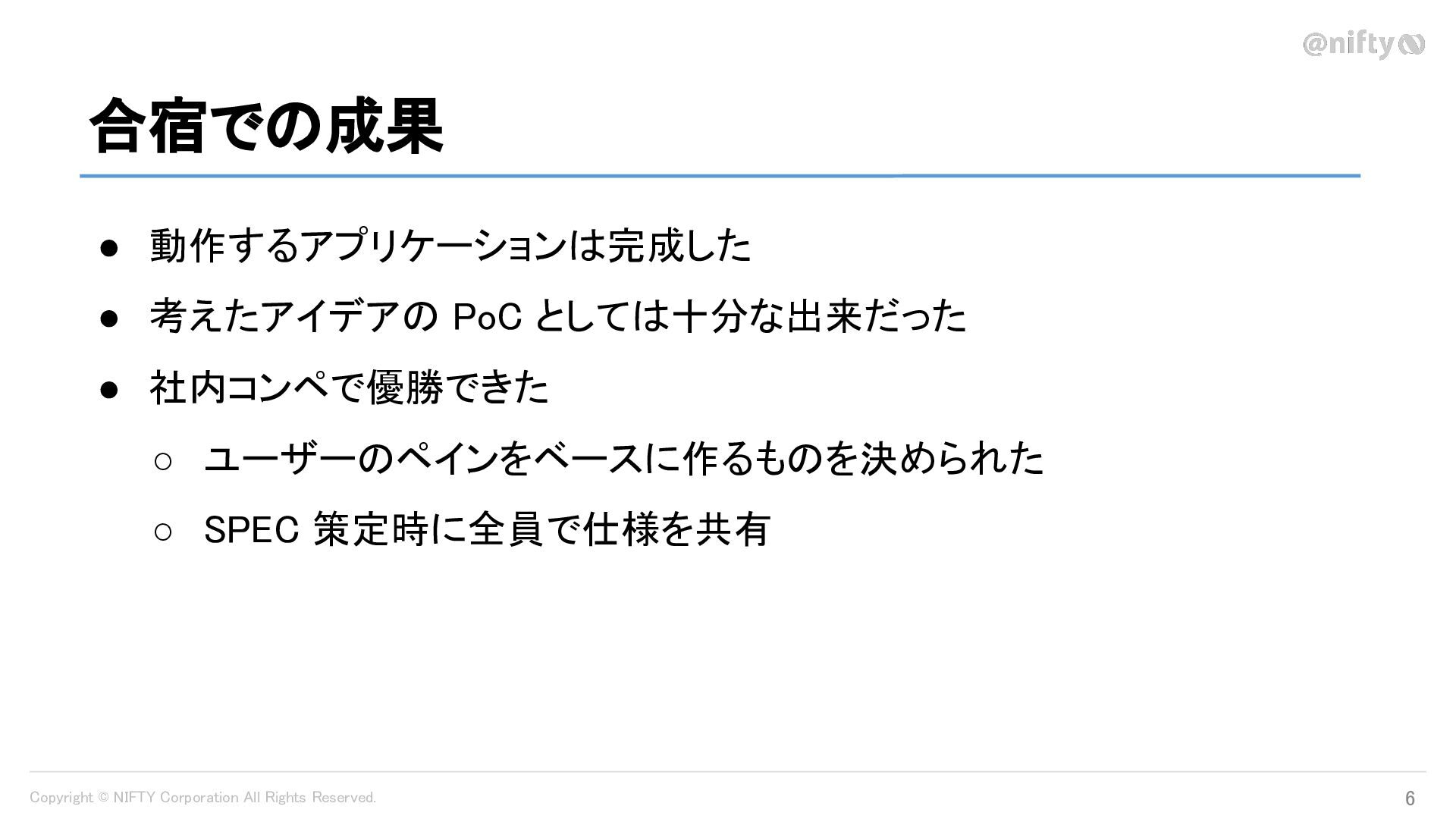 Copyright © NIFTY Corporation All Rights Reserved. 合宿での成果 6
