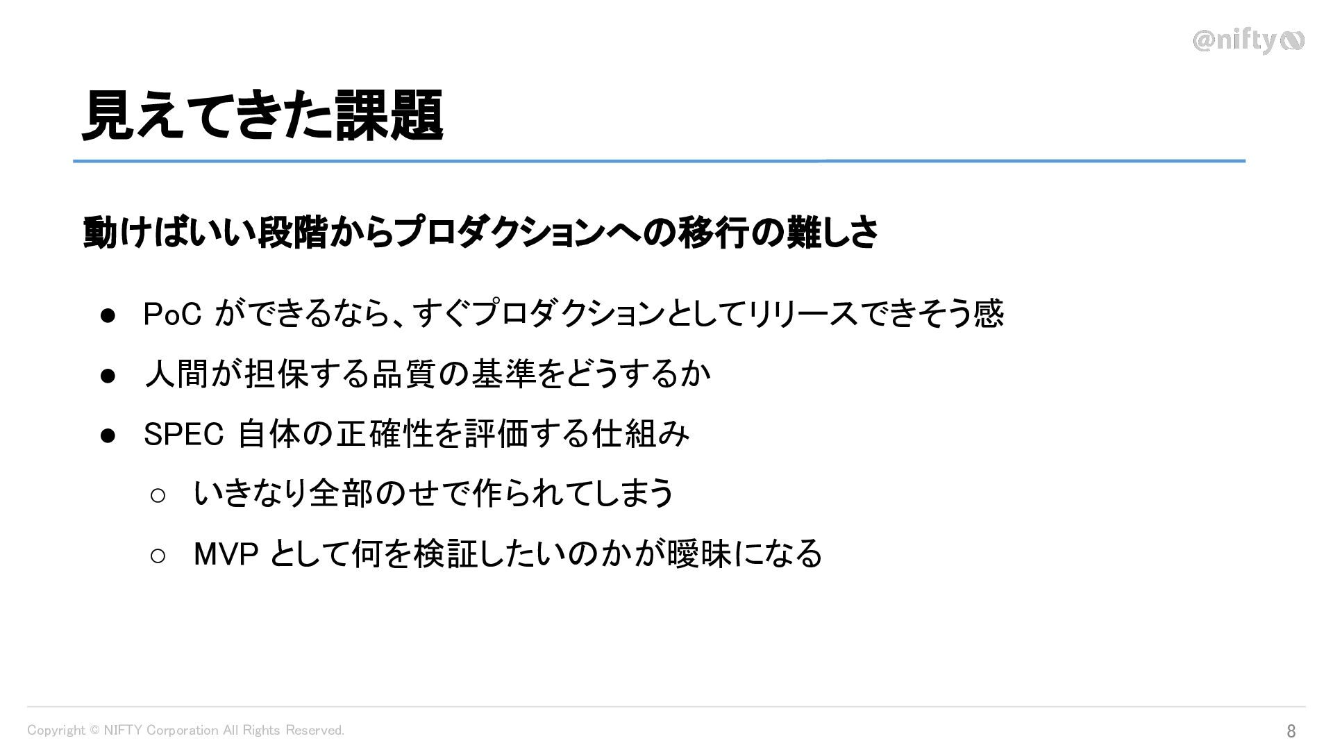 Copyright © NIFTY Corporation All Rights Reserved. 見えてきた課題 8