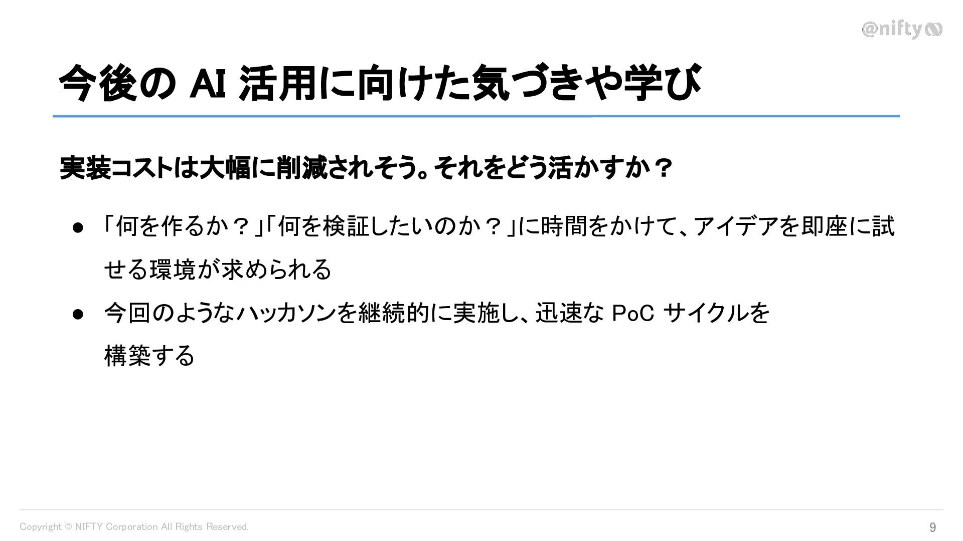 Copyright © NIFTY Corporation All Rights Reserved. 今後の AI 活用に向けた気づきや学び