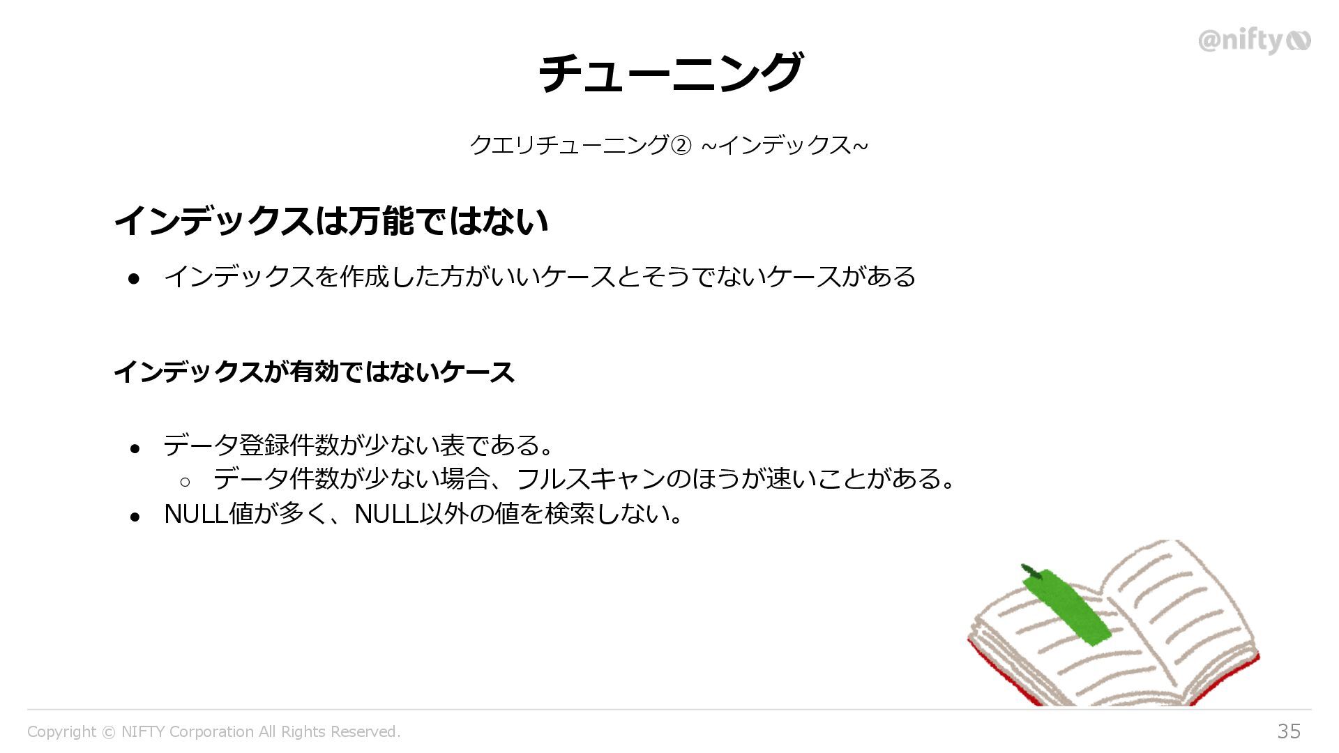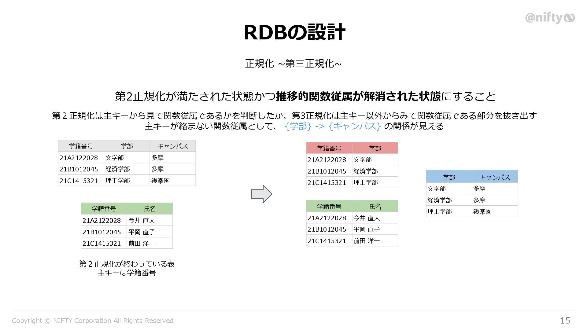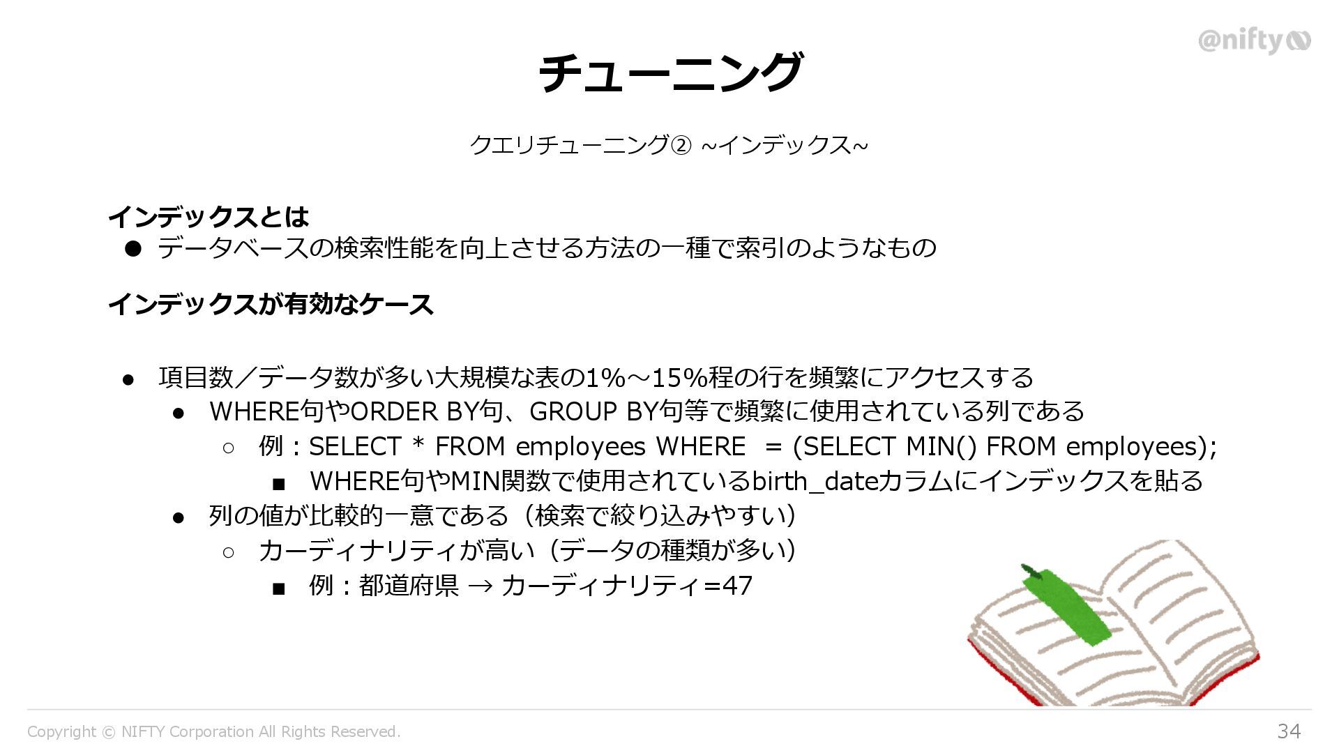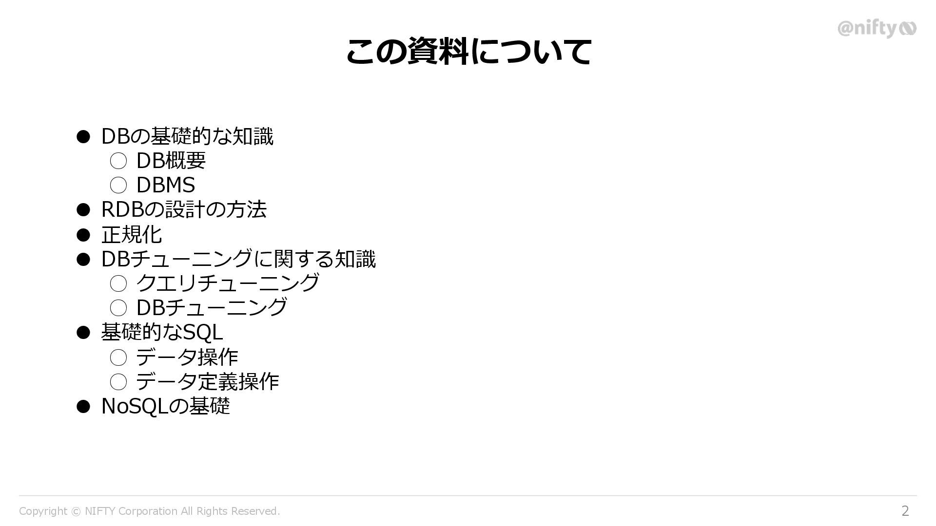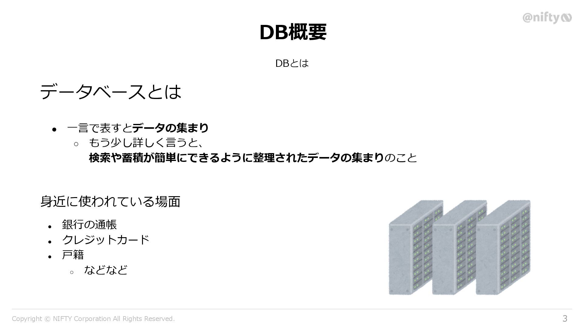 ~データ操作⾔語①~ id title 1 恐⻯図鑑 2 ⽣物図鑑 3 昆⾍図鑑 4 植物図鑑 DELETE(データの削除) idが2のデータを削除 「book」テーブル DELETE FROM book (id, title) WHERE id = 2; id title 1 恐⻯図鑑 3 昆⾍図鑑 4 植物図鑑