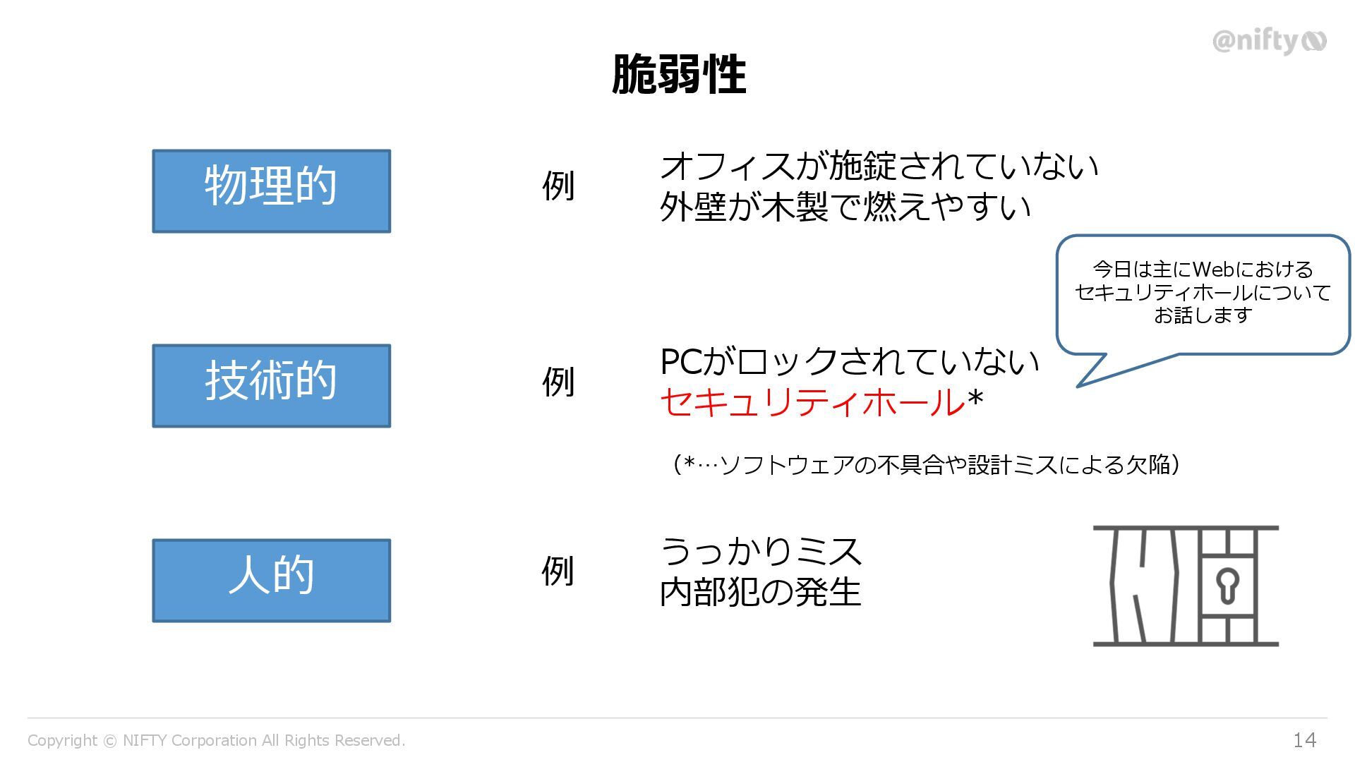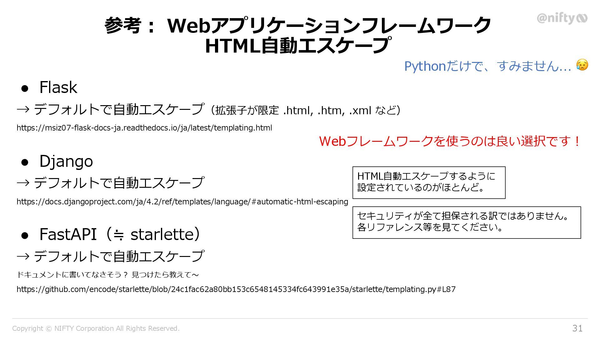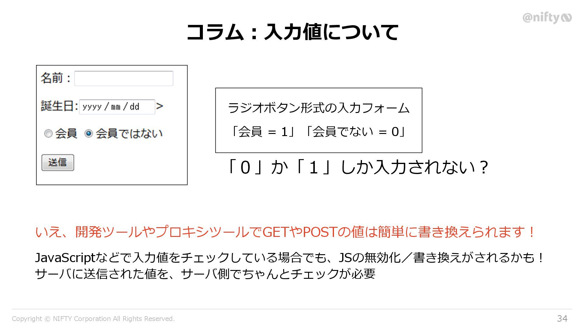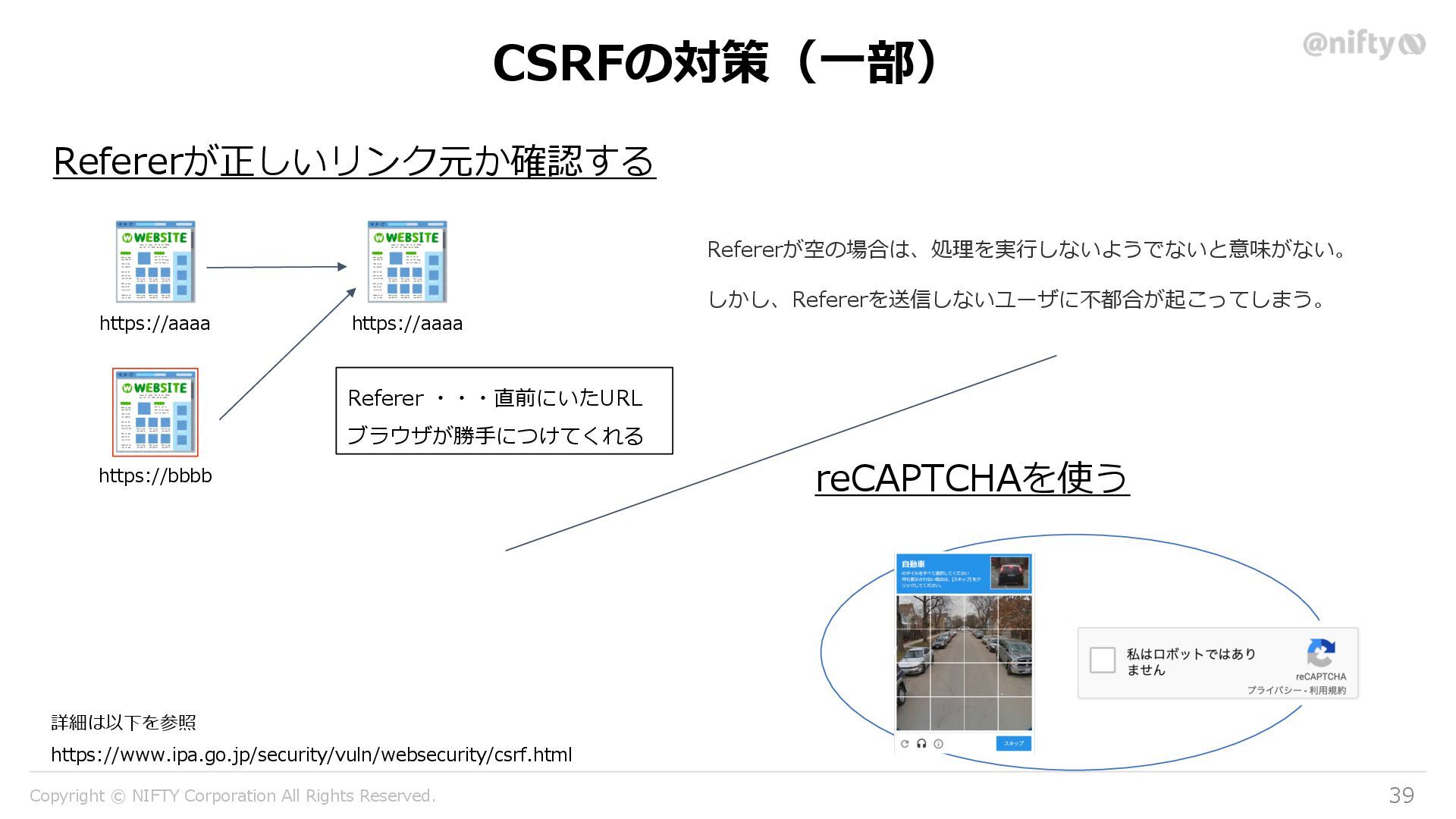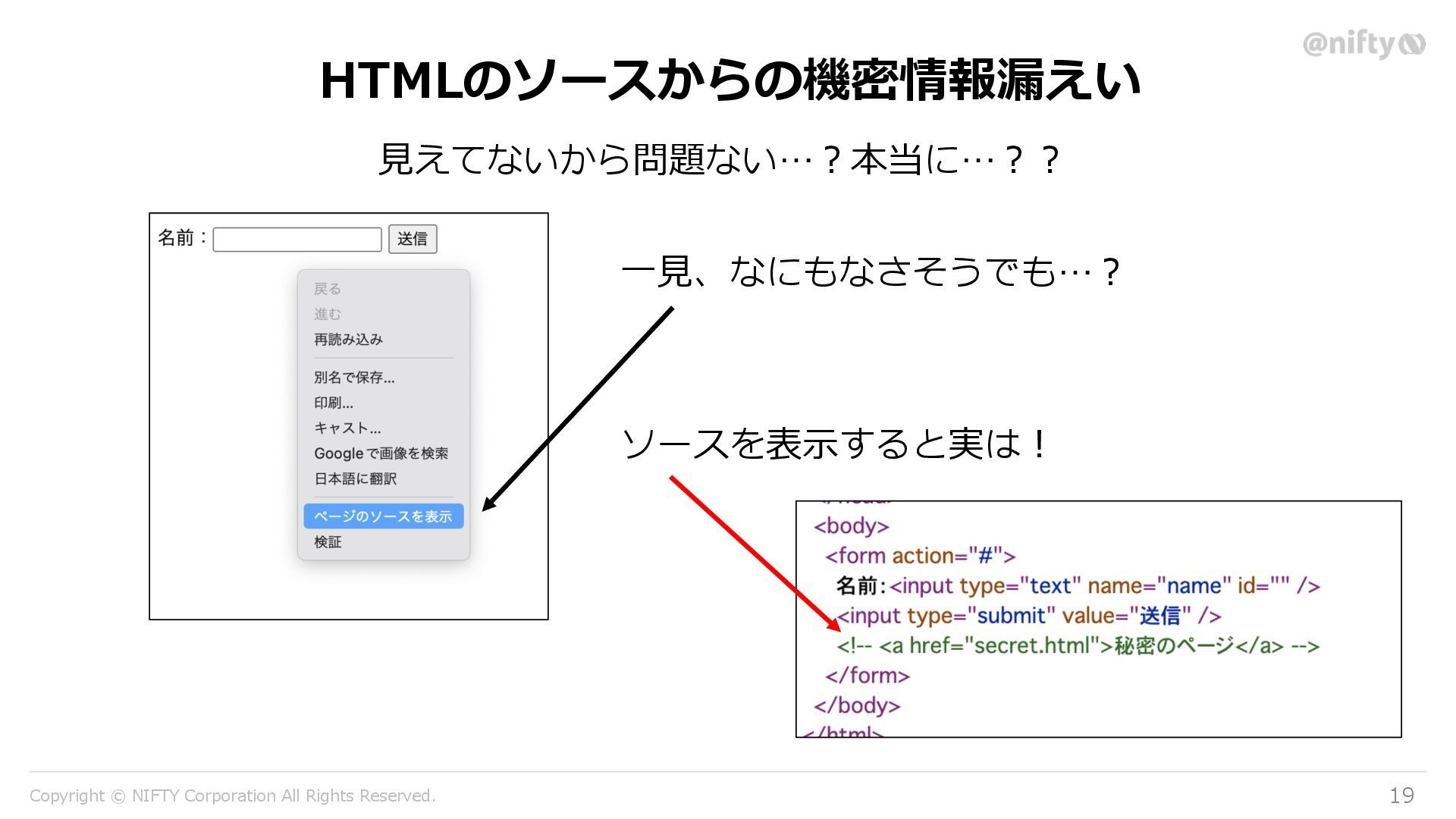 リクエストの⼊⼒値をレスポンスに出⼒する際に発⽣ 蓄積型(Stored) データストアに保存した⼊⼒値を出⼒する際に発⽣ DOM Based ⼊⼒値をJavaScript上で不適切に使⽤することで発⽣ 詳細は以下を参考 https://jvndb.jvn.jp/ja/cwe/CWE-79.html 検索サイト 掲⽰板サイト