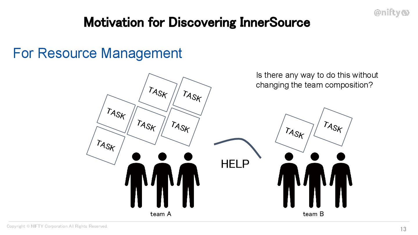 for Discovering InnerSource For Resource Management TASK TASK TASK TASK TASK TASK TASK TASK HELP team A team B Is there any way to do this without changing the team composition?