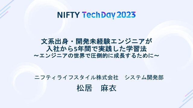 文系出身・開発未経験エンジニアが 入社から5年間で実践した学習法 〜エンジニアの世界で圧倒的に成長するために〜 (LT) - NIFTY Tech Day 2023