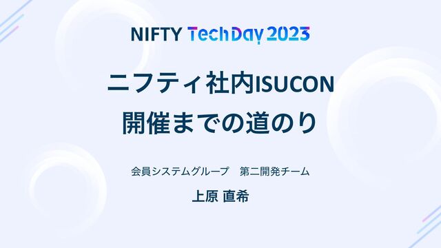 Copyright ©NIFTY Corporation All Rights Reserved. χϑςΟࣾISUCON ։࠵·ͰͷಓͷΓ ձһγεςϜάϧʔϓɹୈೋ։ൃνʔϜ ্ݪ