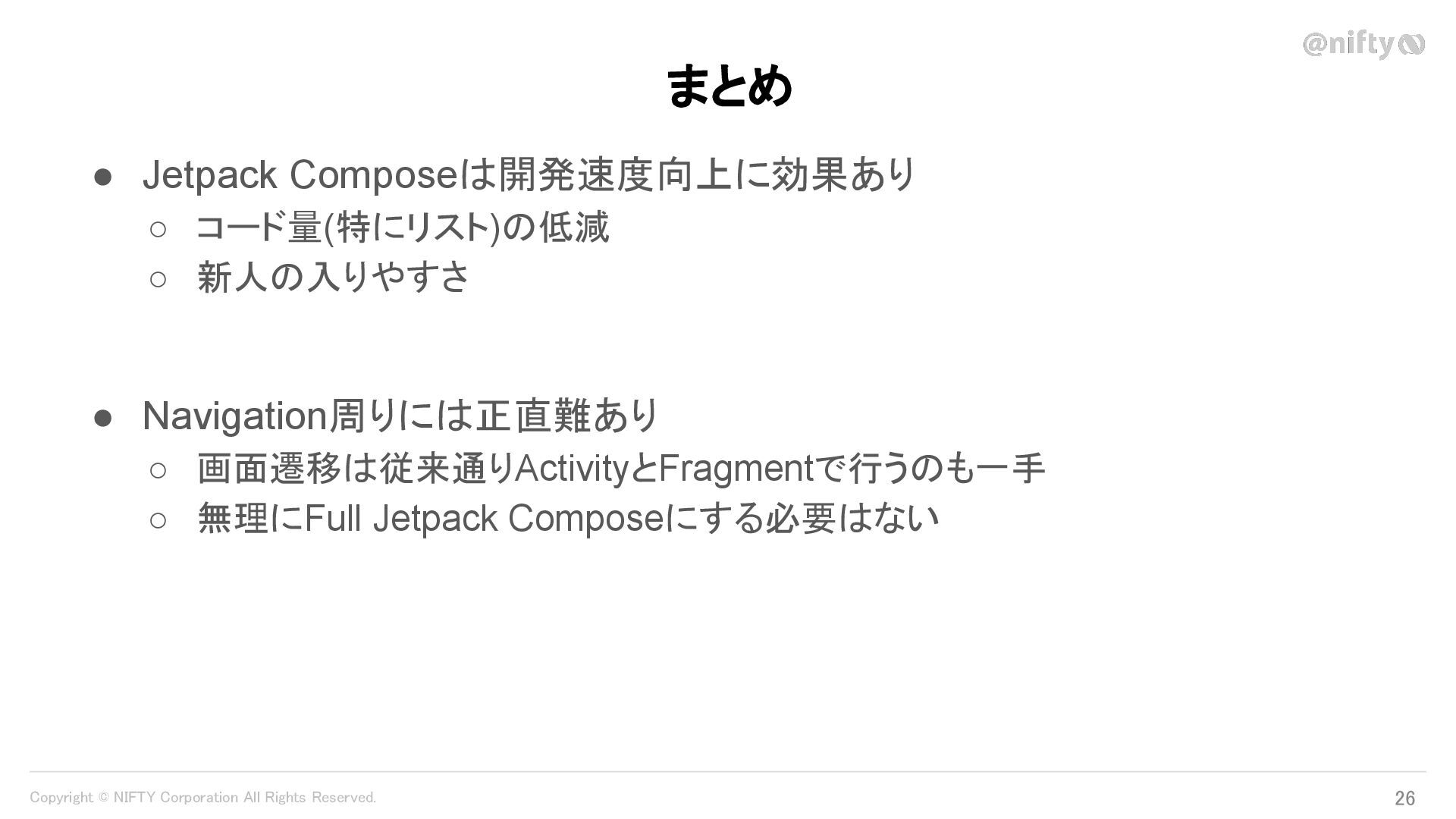 Copyright © NIFTY Corporation All Rights Reserved. Jetpack Composeを導入して 見えた利点と課題