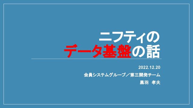 ニフティの データ基盤の話 2022.12.20 会員システムグループ/第三開発チーム 黒羽 孝夫