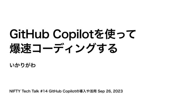 GitHub Copilotの導入や活用 - NIFTY Tech Talk #14