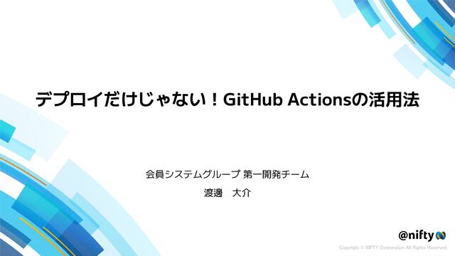 Copyright © NIFTY Corporation All Rights Reserved. デプロイだけじゃない!GitHub Actionsの活用法 渡邊 大介